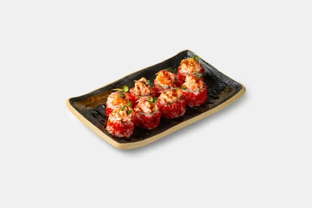Насыщенный ролл с лососем и сливочным сыром. Хрустящая икра масаго и свежий огурец создают отличную игру текстур, которую идеально дополняет пряный аромат и сладость соуса терияки. Ролл запекается сверху, при подаче в заведении будет теплым, в доставке будет холодным.