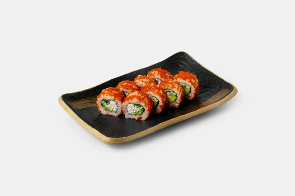 Лёгкий и гармоничный ролл с нежным рисом и снежным крабом. Свежий огурец добавляет хрустящую нотку, а авокадо — мягкость и кремовую текстуру. Икра масаго завершает вкус ярким акцентом и приятной солоноватостью.